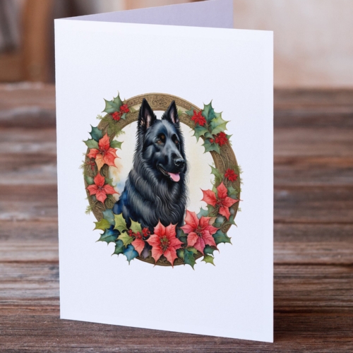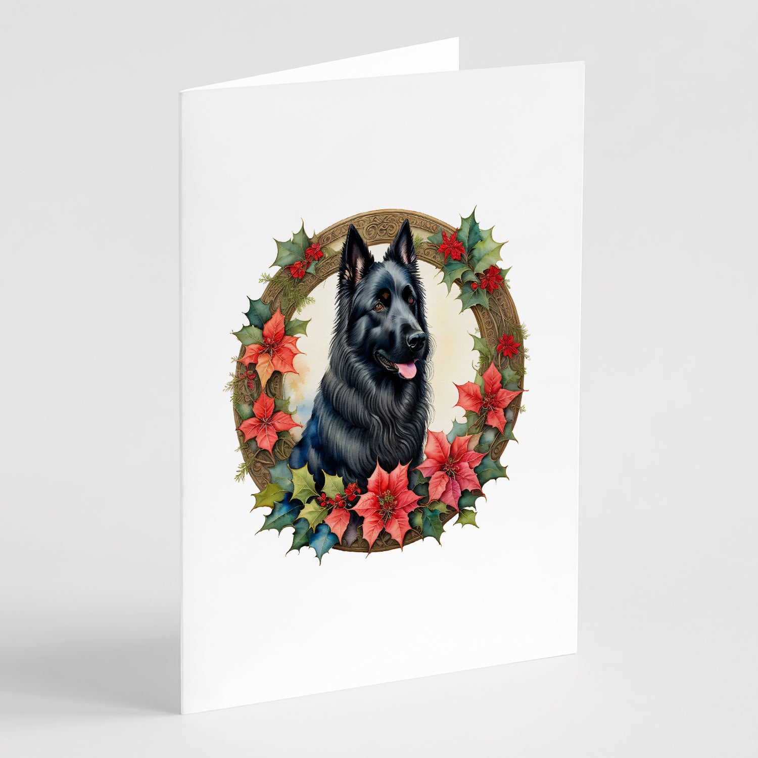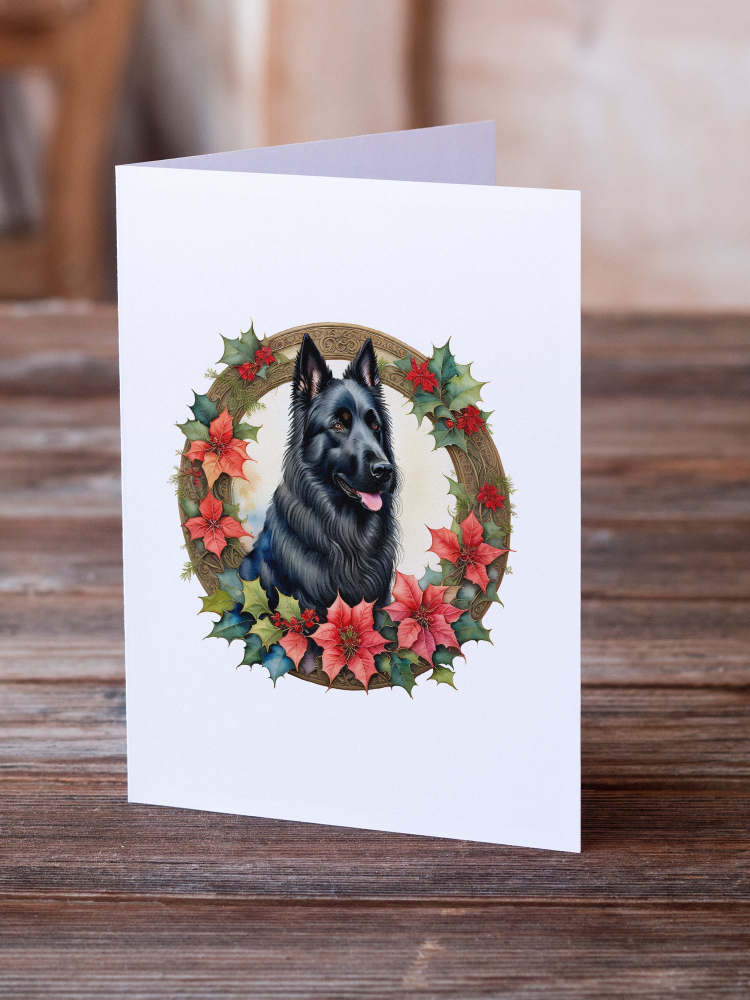 Belgian Sheepdog Christmas Flowers Greeting Cards Pack of 8