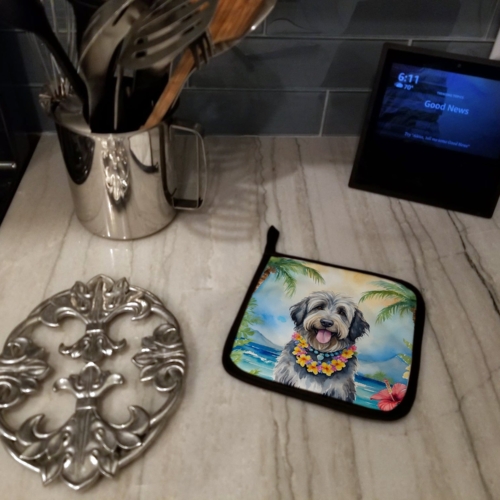 Pair of Pot Holders featuring breed specific Bergamasco Sheepdog artwork. A Pair of Pot Holders to match your kitchen decor. Made in the USA these are thick and functional. Full color artwork decorates the front polyester fabric of the hot pad and accented by a black trim. Use these at as a trivet for your Thanksgiving or Christmas tablescape. Filled with insulated fabric and quilted for durability. These colorful pot holders will make a great gift for your favorite home cook or executive chef. Each pot holder measures approximately 7 1/2 inches by 7 1/2 inches. A hanging tab is included.