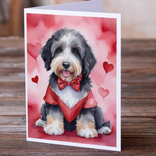 Greeting Cards Pack of 8 featuring breed specific Bernedoodle artwork. Celebrate Valentine’s Day with this Valentine’s Day . Celebrate special moments with Caroline’s Treasures Printed Greeting Card Pack. This pack includes eight beautifully folded 5×7 cards, accompanied by eight matching white envelopes. With blank interiors, these cards provide ample space for your personalized messages and heartfelt holiday greetings. Each card features captivating full-color artwork, meticulously printed in our facility on high-quality 80 lb cover stock or 216 GSM. The super smooth finish of the white cards enhances the visual impact of the artwork, creating a truly stunning presentation. Designed by our talented in-house artists or licensed artists, the artwork on these cards showcases their creativity and attention to detail. From vibrant illustrations to captivating designs, each card tells its own unique story. Whether it’s for birthdays, anniversaries, holidays, or any special occasion, Caroline’s Treasures Greeting Card Pack is the perfect way to convey your heartfelt sentiments. Share joy, love, and warm wishes with these exquisite cards and make every moment unforgettable.