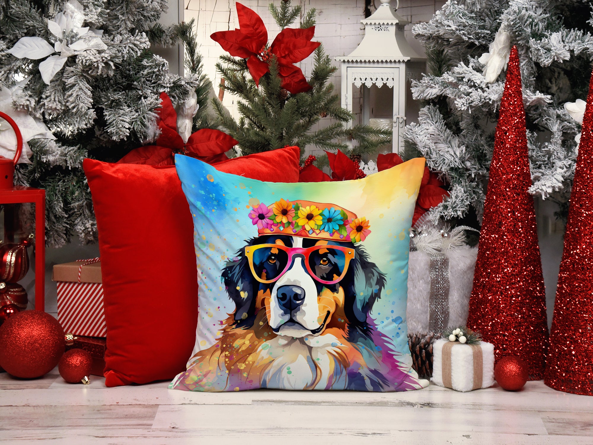 Throw Pillow featuring breed specific Bernese Mountain Dog artwork. Revitalize your outdoor or indoor living space with Caroline’s Treasures 18×18 Fabric Decorative Pillow. With a generously sized dimension of approximately 18 inches by 18 inches, this pillow makes a comfortable and aesthetic addition to any seating area. Made from a unique, water-resistant material developed by Caroline’s Treasures, the pillow sham is 100% polyester fabric that’s durable and ready to weather any condition. Its vibrant, full-color artwork will not fade over time as it is dyed with color-fast dyes. Whether you place it on your patio furniture, porch, veranda, or indoor couch, its soft canvas fabric ensures a cozy experience. The pillow is handcrafted in the United States, featuring a sham created from three pieces of fabric and a polyester insert for enduring shape and overstuffed comfort. Despite being robustly built to endure the outdoors, it is as soft and snug as your favorite indoor cushions. Please note, as all our pillows are handmade, sizes may vary slightly, adding to the charm of this unique decorative item.