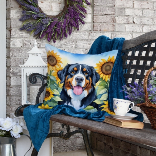 Bernese Mountain Dog in Sunflowers Throw Pillow