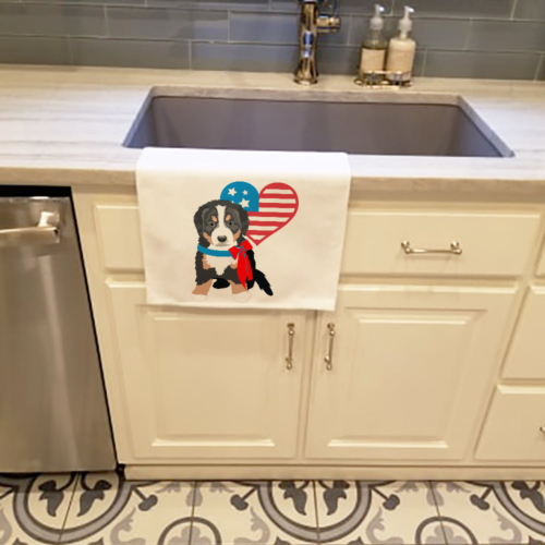 Kitchen Towel Set of 2 featuring breed specific Bernese Mountain Dog artwork. This Kitchen Towel Set of 2 is from Caroline’s Treasures collection Patriotic USA. Spruce up your kitchen decor with Caroline’s Treasures Decorative White Kitchen Towel Set. This set of two dish towels showcases beautiful artwork from one of our talented artists, making them both practical and visually appealing. These towels are crafted from 100% cotton, offering excellent absorbency and durability, making them ideal for any kitchen task. Each white towel measures 19 inches by 28 inches, providing ample coverage for drying dishes or wiping up spills. The standout feature of these towels is the full-color artwork design printed on each one. They can serve as a vibrant accent in your kitchen, turning a functional item into a delightful piece of decor. When it comes to care, these towels are machine washable in cold water and can be dried on low heat. Remember to always use a pressing cloth when pressing the design, and avoid using bleach on the decorated towel. The Decorative White Kitchen Towel Set makes a great gift or a stylish addition to your own kitchen.