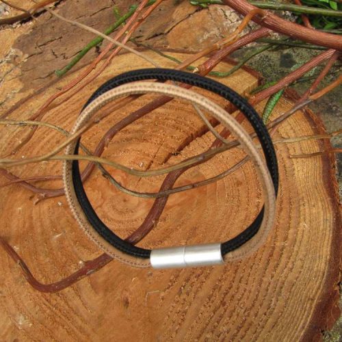 € 9.90 Cork bracelet 2-row natural-black with mat silverplated magnetic clasp
