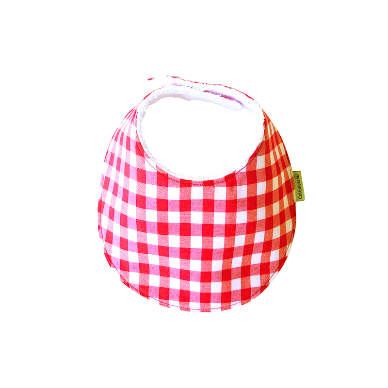 This Maxi Vichy square bib from our red color layettes is a spring accessory like the flight of a bird in this loving season. The black studs contrast in a magic way with the red color of each square.. Bib measures: 23 cm x 26 cm