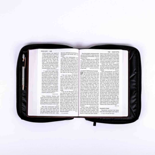 Whether you’re at home, on the go, or at church, this black canvas Bible cover will keep your Bible safe, organized, and easily accessible. It’s the perfect combination of durability, convenience, and style, making it an essential accessory for any Bible user.