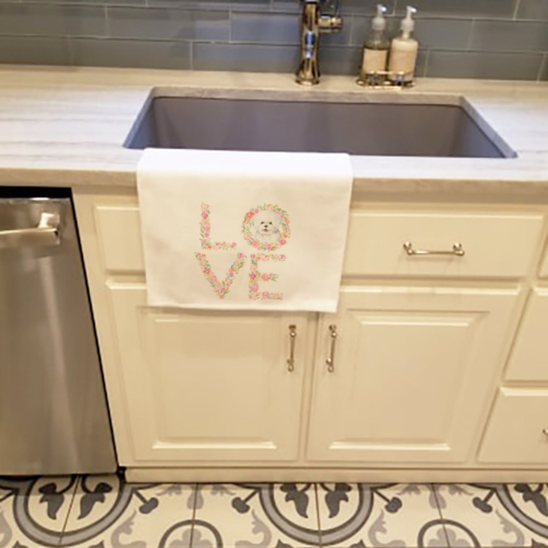 Kitchen Towel Set of 2 featuring breed specific Bichon Frise artwork. Celebrate Valentine’s Day with this Valentine’s Day Kitchen Cotton Towels. This Kitchen Towel Set of 2 is from Caroline’s Treasures collection LOVE. Spruce up your kitchen decor with Caroline’s Treasures Decorative White Kitchen Towel Set. This set of two dish towels showcases beautiful artwork from one of our talented artists, making them both practical and visually appealing. These towels are crafted from 100% cotton, offering excellent absorbency and durability, making them ideal for any kitchen task. Each white towel measures 19 inches by 28 inches, providing ample coverage for drying dishes or wiping up spills. The standout feature of these towels is the full-color artwork design printed on each one. They can serve as a vibrant accent in your kitchen, turning a functional item into a delightful piece of decor. When it comes to care, these towels are machine washable in cold water and can be dried on low heat. Remember to always use a pressing cloth when pressing the design, and avoid using bleach on the decorated towel. The Decorative White Kitchen Towel Set makes a great gift or a stylish addition to your own kitchen.