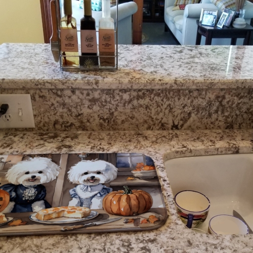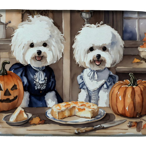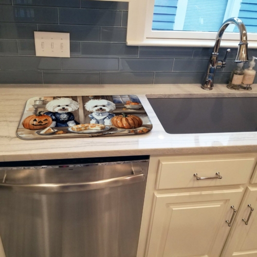 Bichon Frise Fall Kitchen Pumpkins Dish Drying Mat