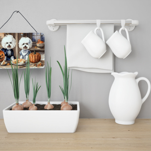 Wall or Door Hanging Prints featuring breed specific Bichon Frise artwork. Celebrate Halloween with this Halloween Metal Print. Add a splash of color and artistic flair to any indoor or outdoor space with our Aluminum Artwork Prints. These unique prints, featuring full-color, multicolor designs, provide a versatile decorative touch that can enhance a kitchen, bathroom, office, outdoor patio, or even the front door area. Each print measures 8 inches by 12 inches, making it the perfect size to catch the eye without overwhelming your space. Constructed with durability in mind, these prints can be placed outdoors and withstand direct sunlight for a significant amount of time before any fading begins. Designed for easy installation, each print features a black hanging rope and has a lightweight profile. This allows for quick hanging with just about any nail or screw. For safety and aesthetic appeal, the print’s corners are gently rounded. The back of the print showcases a brushed silver color for an added touch of elegance. Rust and fade-resistant, these Aluminum Artwork Prints are not only beautiful but are also built to last. Elevate your space with these stunning prints, crafted with care and artistic passion.