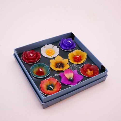 Adding tropical vibes with these blossom and bloom scented tealights in assorted tropical flower design. Each flower candle pops up high from a tin cup showing off its beauty. Scented with Neroli essential oil a sweet, honeyed and relaxing. They can be used with any standard tealight holders. An impressive gift for any special occasions. 100% Handmade, vegan, cruelty free and fairly trade
