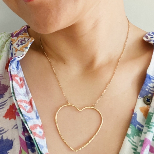 Hammered wire heart necklace. 2 inch X 2 inch for heart and about 18 inch chain with 3 inch extender. Lead and Nickel compliance Designed in USA and crafted in China