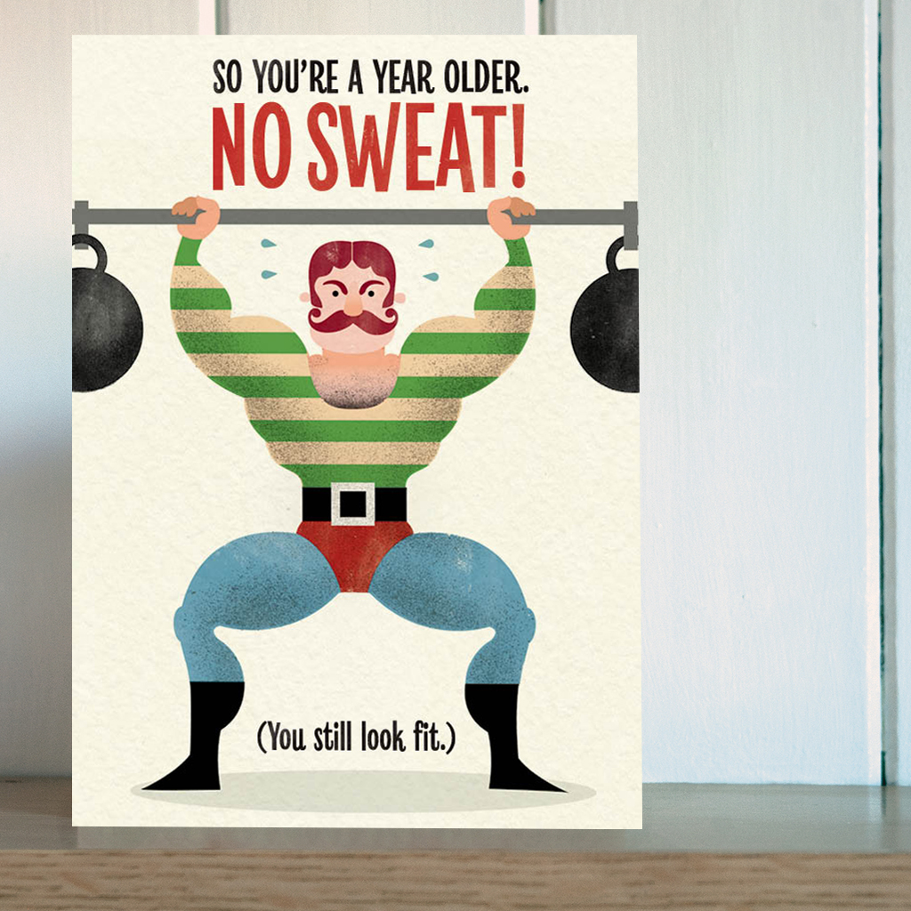 A year older? No sweat! This quirky card featuring Pennychoo’s moustachioed strong man, Samson Grunt, is here to remind its recipient that getting older isn’t worth worrying about. Inspired by an old, circus-themed tin found in a local junk shops, these cards have an old fashioned softness and are perfect for big kids and little kids alike.