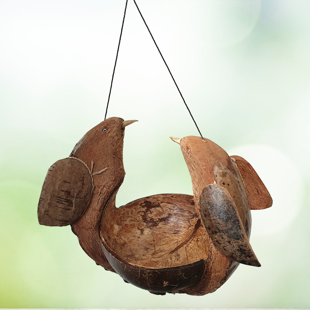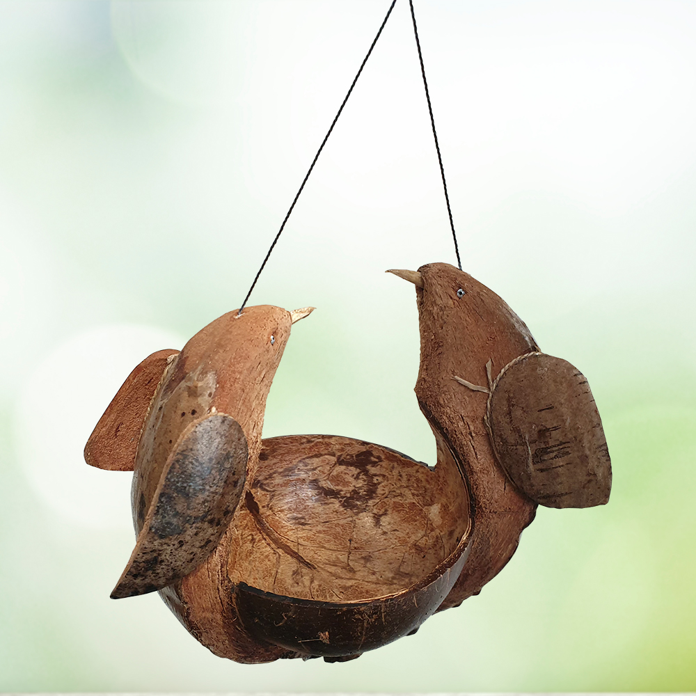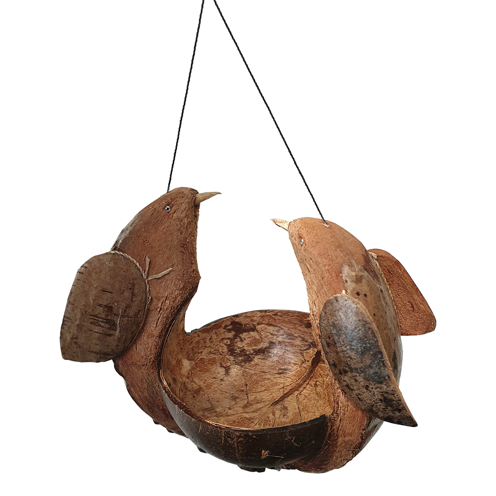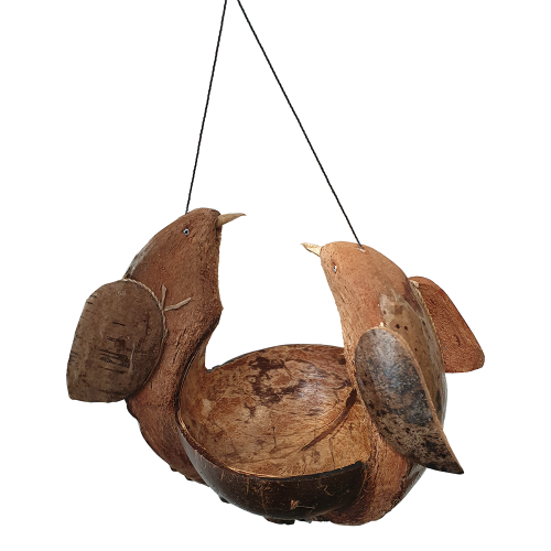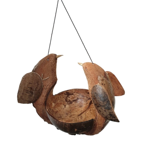 Bird Feeder, Coconut Shell with 2 Birds Carving, Approx 30cm Hanging Height