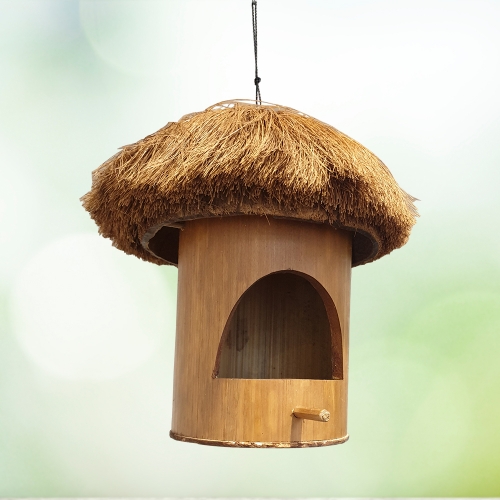 Enhance your garden with our multifunctional Bamboo Bird Feeder and House, an eco-friendly sanctuary for your feathered friends. Handcrafted from natural bamboo, this charming structure offers both a feeding station and a cosy shelter, making it a practical and beautiful addition to your outdoor space. With an approximate hanging height of 30cm, it�s perfect for attracting small birds to your garden, patio, or balcony. The natural bamboo construction ensures durability and weather resistance while blending seamlessly with the natural environment. Its unique design provides a safe and inviting space for birds to feed, rest, or nest, adding life and movement to your garden.
