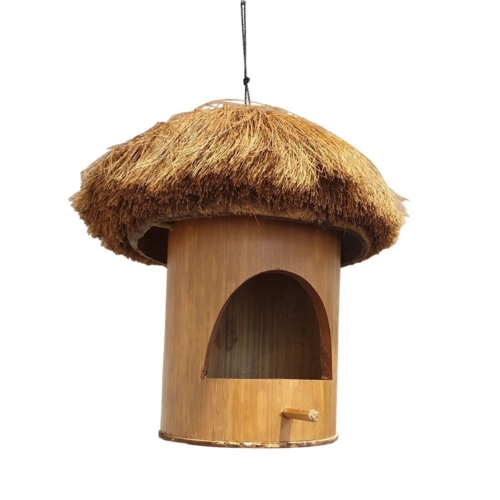 Enhance your garden with our multifunctional Bamboo Bird Feeder and House, an eco-friendly sanctuary for your feathered friends. Handcrafted from natural bamboo, this charming structure offers both a feeding station and a cosy shelter, making it a practical and beautiful addition to your outdoor space. With an approximate hanging height of 30cm, it�s perfect for attracting small birds to your garden, patio, or balcony. The natural bamboo construction ensures durability and weather resistance while blending seamlessly with the natural environment. Its unique design provides a safe and inviting space for birds to feed, rest, or nest, adding life and movement to your garden.