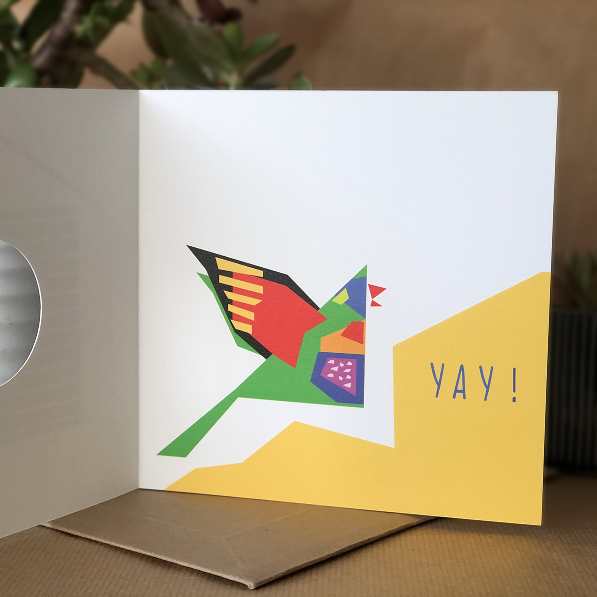 Introducing our charming Square 15 x 15 cm “New Home” card, adorned with a captivating aperture cutout that offers a delightful peek at our intricate geometric bird design. This thoughtful card is perfect for celebrating the excitement of moving into a new home, marking the beginning of a new chapter in life. The front of the card features the sentiment “New Home” alongside a single bird, symbolizing the joy and independence that come with embarking on this new journey. Inside, you’ll find the cheerful message “Yay,” adding a touch of celebration and excitement to the occasion. Crafted from premium 300gsm recycled card stock, our “New Home” card not only boasts durability but also reflects our commitment to sustainability. Each card is accompanied by a Kraft envelope, offering a rustic and eco-friendly touch to your greetings. For added protection, our cards are encased in a cellophane pocket, ensuring they arrive in pristine condition. However, if you prefer to reduce plastic waste, we offer the option to send the card without the cello pocket upon request. Celebrate the joy of a new beginning with our charming “New Home” card, where creativity and heartfelt sentiments come together to create a truly memorable experience.