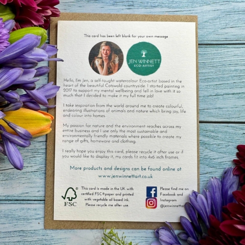 These carbon neutral FSC certified Eco-Cards have been produced in the UK by an Eco-friendly company. In line with my ethos of minimising impact on our beautiful planet .