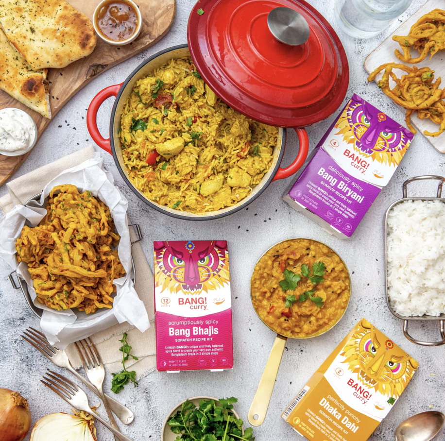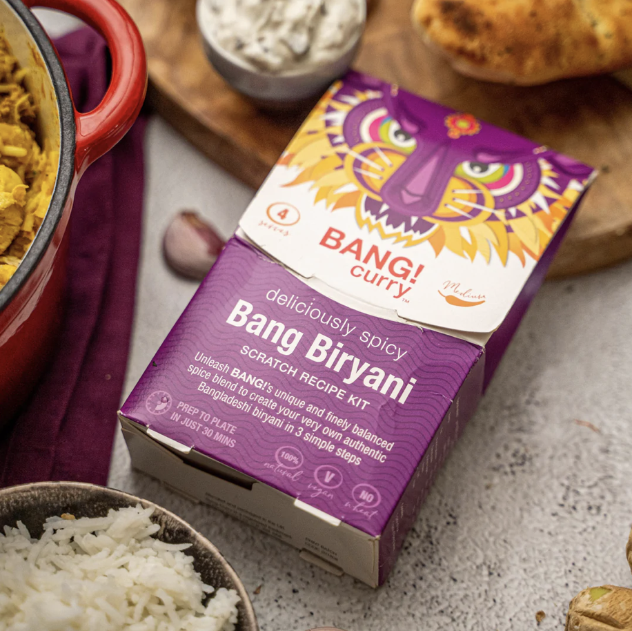 CURRY KIT: A show stopping Bangladeshi treasure that’s perfect for when guests pop over or for a delicious lunch-time treat you can tuck into again and again. Each kit serves 4 people and contains 1 pack of Basmati Rice and 1 pack of Bang Secret Spice Mix.