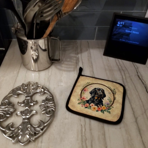 Black and Tan Coonhound and Flowers Pair of Pot Holders