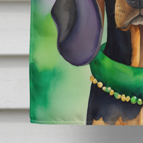 House Flag featuring breed specific Black and Tan Coonhound artwork. Celebrate Mardi Gras with this Mardi Gras Large Flag. Presenting our Heavy Duty Polyester House Size Decorative Sleeve Pole Flag, a vibrant addition to enhance the aesthetic appeal of your home. This large decorative flag, measuring approximately 28 x 40 inches, offers ample coverage and visibility. Each flag is meticulously sewn and made individually, ensuring a unique piece that may slightly vary in size. It’s a sleeve pole flag, designed to fit a standard decorative flag pole effortlessly. Please note that the flag pole and bracket are not included and should be purchased separately. What sets our flag apart is its dual-sided print. The design is mirrored on both sides of the fabric, allowing for uniform visibility regardless of the angle. Printed in full color, our flag showcases vibrant hues that truly stand out. To ensure lasting vibrancy and durability, the dyes are heat-set into the fabric. This ensures your flag remains bright and captivating through various weather conditions. Elevate the look of your home with our Heavy Duty Polyester House Size Decorative Sleeve Pole Flag!