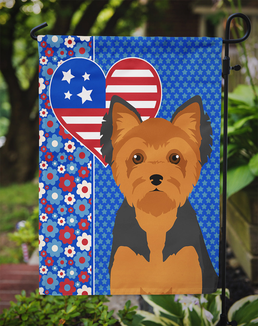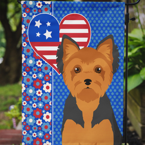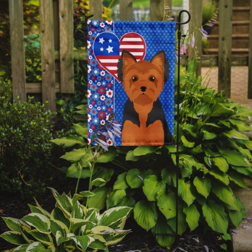 Garden Flag featuring breed specific Yorkshire Terrier artwork. This Garden Flag is from Caroline’s Treasures collection USA Love America. Enhance the beauty of your garden, patio, or yard with Caroline’s Treasures Decorative Garden Flag, proudly made in the USA. Crafted from two pieces of thick, double-sided polyester fabric, this 2-ply garden flag is designed to withstand various weather conditions, making it water-resistant and weatherproof. Featuring correctly readable words on both sides, this garden flag offers a delightful visual experience from any angle. With its heavier weight, it stands out among other garden flags, ensuring stability and durability even in wind, rain, and snow. Measuring approximately 11 1/4 inches by 15 1/2 inches, this flag allows you to personalize your outdoor decor. It comes with a 1 1/2-inch sleeve sewn in, allowing easy attachment to any standard garden flag stand or garden size porch hanger (sold separately). Make a statement in your outdoor space with Caroline’s Treasures Decorative Garden Flag, a vibrant and high-quality flag that adds color and personality to your surroundings. Proudly made in the USA, it’s a symbol of quality craftsmanship and attention to detail. This Garden Flag is from Caroline’s Treasures Dogs category of products.