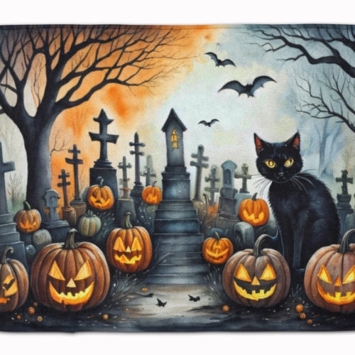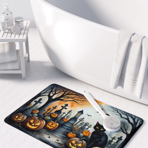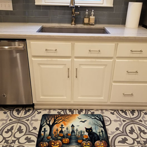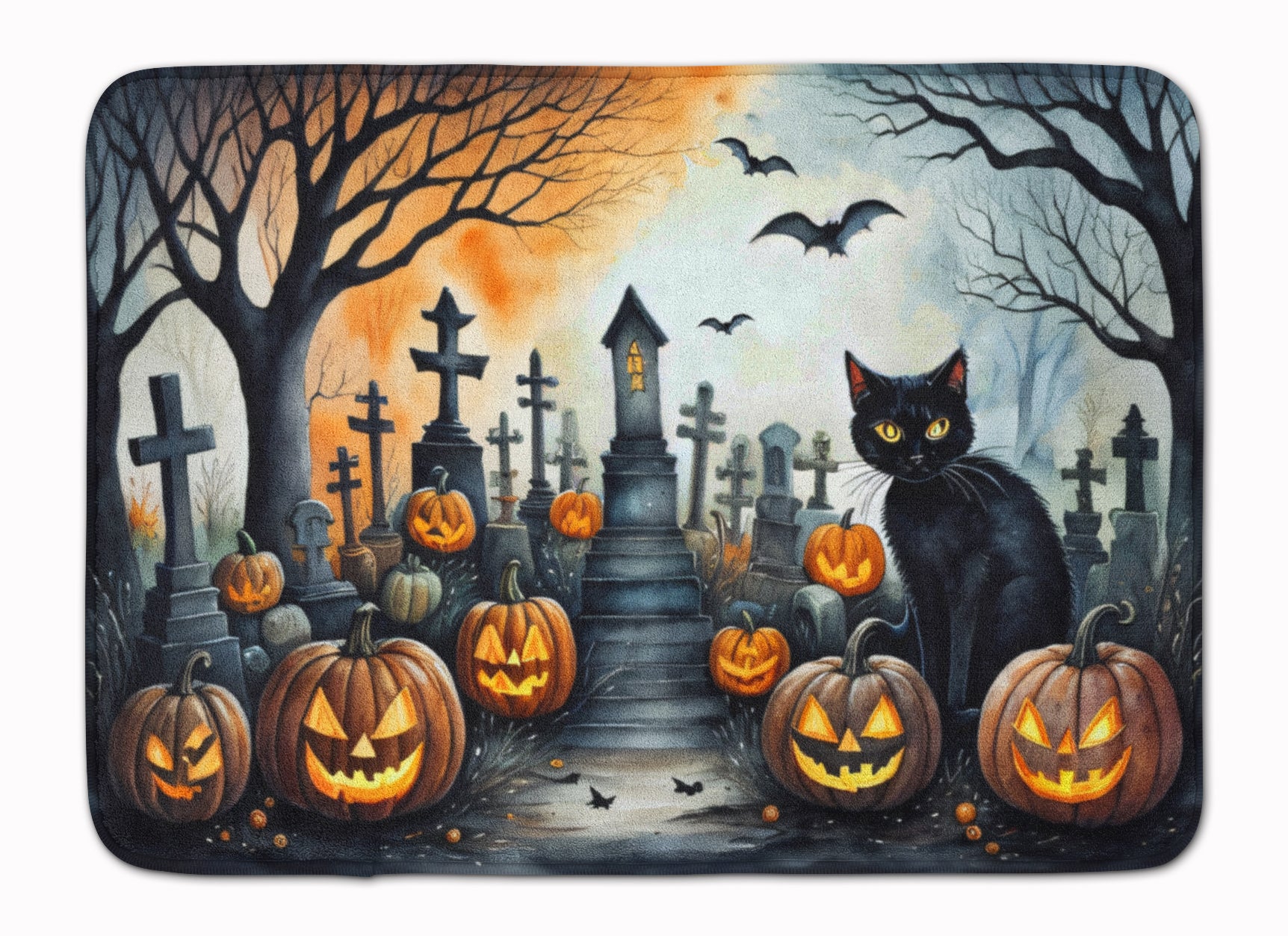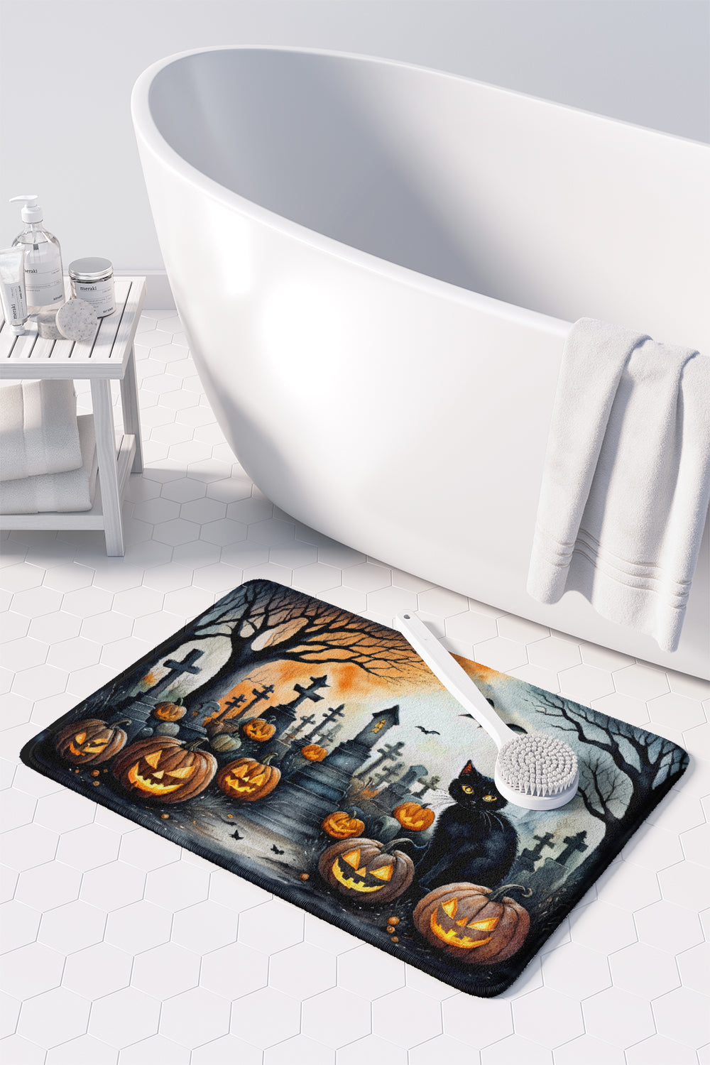 Black Cat Spooky Halloween Memory Foam Kitchen Mat