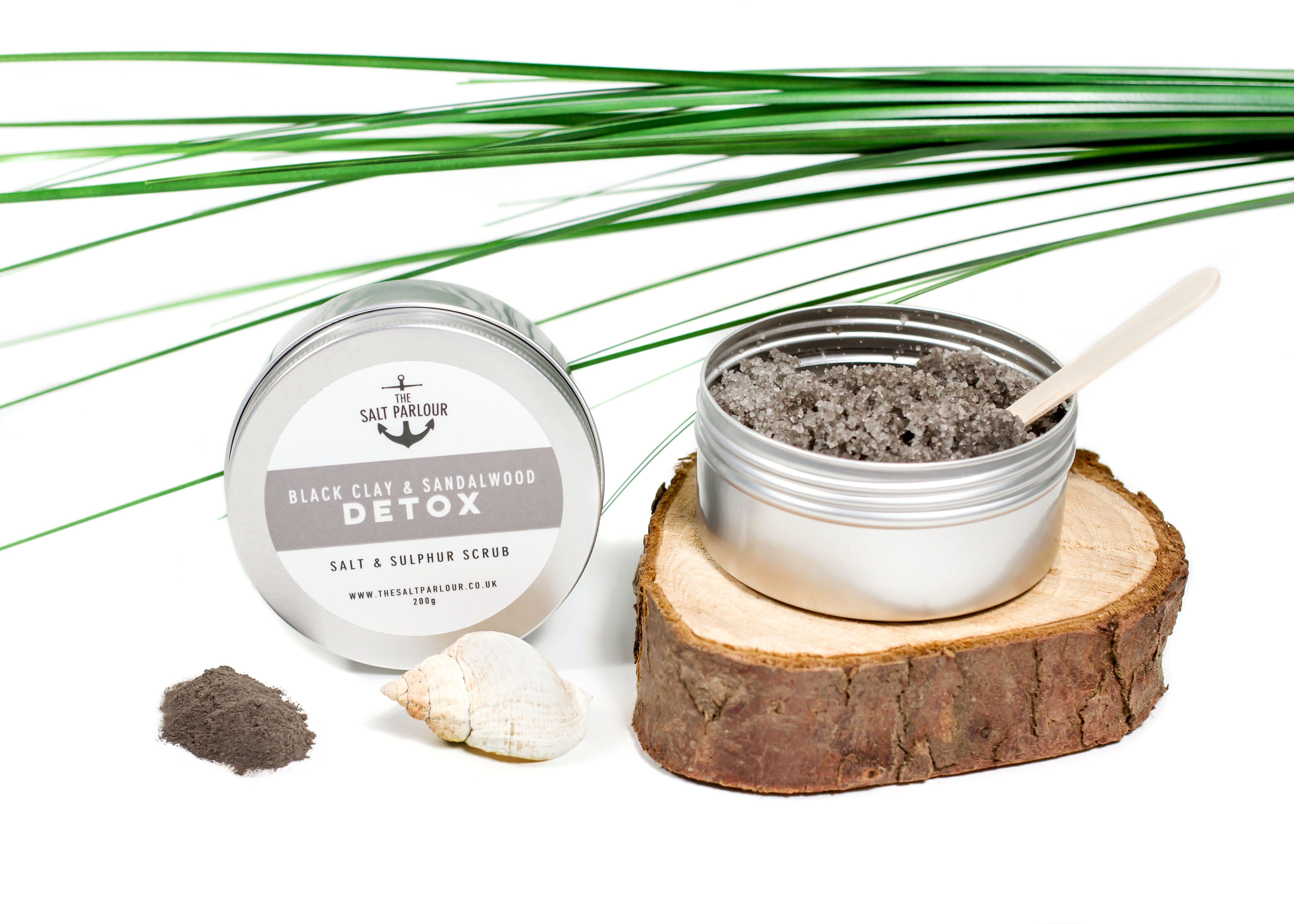 Black Clay, Vanilla Oil, Cedarwood Oil, Sandalwood Oil, Dead Sea Salts, Organic Sulfur.
