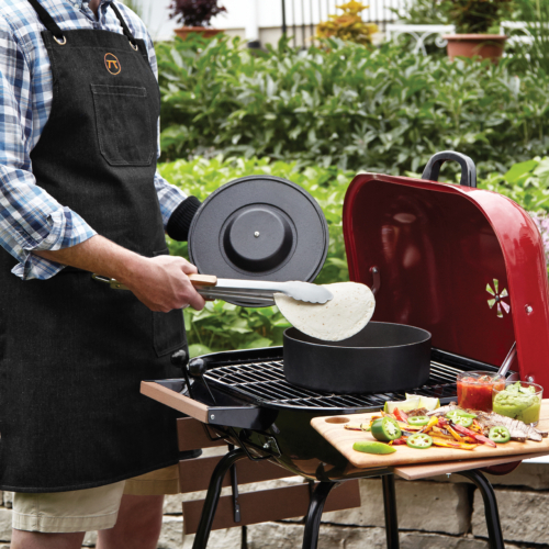 Keep the grill master, chef or mixologist clean and protected with this durable denim apron from Outset. This grilling, kitchen or bar accessory is both attractive and functional with its soft 100% cotton denim material, black cotton straps and antique brass hardware. It is carefully crafted to protect clothes from spills, splatters and grease; perfect for bartending, cooking in the kitchen or at the grill! It’s one size fits most design is suitable for both men and women and includes dual shoulder straps that criss-cross and tie in the back, or around the waist. The functional apron is also equipped with a tong/towel strap and two deep front pockets… ready to store all the tools, condiments and accessories needed. Outset yourself in style with our exclusive grillware for outdoor (and indoor) entertaining. To the grill…to the bar…to the kitchen, in style!