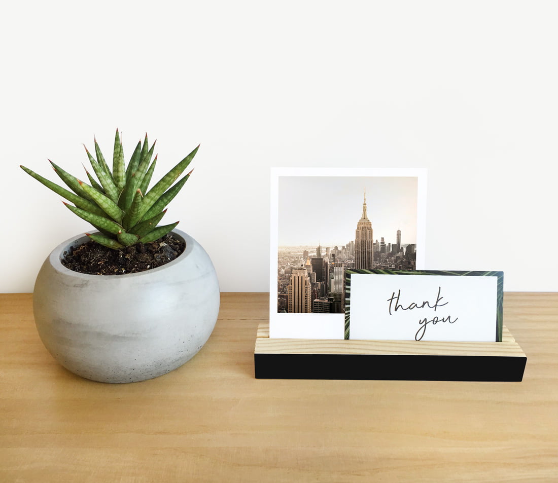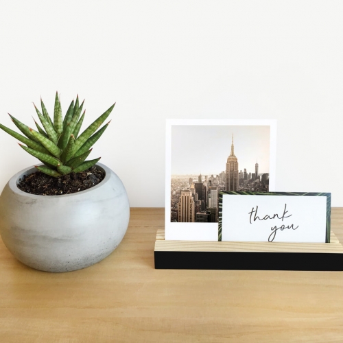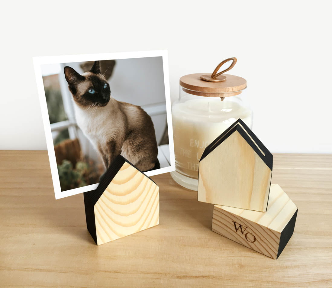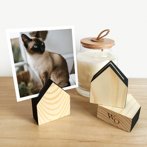 Stylish black house photo holder is the perfect accessory for desks dresser or shelves. It can hold small art prints and photos of various sizes and shapes. Use it to rotate your family photos or style up the nursery! Handcrafted from natural eco-friendly wood with color accent on the sides. The groove is wide enough to accommodate all different kinds of paper. We are using 4×4 in our product shots.