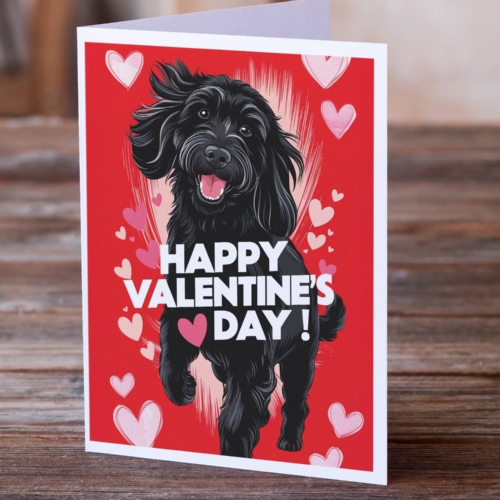 Black Labradoodle Happy Valentine’s Day Greeting Cards Pack of 8