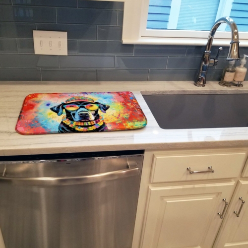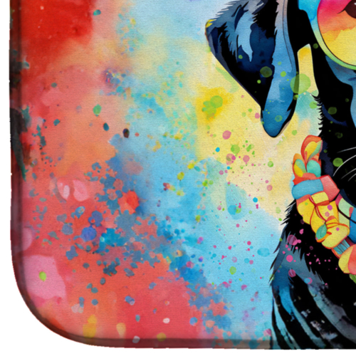 Dish Drying Mat featuring breed specific Black Labrador artwork. Say goodbye to messy countertops and soggy dish towels with our innovative dish drying mat. Our high-quality dish drying pad is designed to keep your countertops dry while offering a stylish and efficient solution. Whether you’re air drying dishes, glasses, stemware, silverware, pots, pans, bottles, or even fruits and vegetables, our dish mat is the perfect choice. The 14 inches x 22 inches size fits most counters and dish drying racks, and the non-slip design ensures stability. Made with water-absorbent polyester and a polyurethane foam insert, our dish drying mat is not only functional but also durable. It’s machine washable and printed in the USA for long-lasting use. The beautiful artwork adds flair to your kitchen decor, making it a perfect housewarming gift or present for any occasion. Upgrade your kitchen experience with our absorbent and versatile dish drying mat.