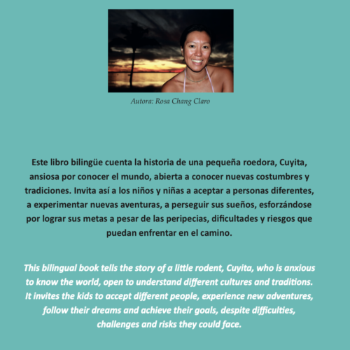 This bilingual Fair Trade book tells the story of a little rodent, Cuyita, who is anxious to know the world, open to understand different cultures and traditions. It invites kids to accept different people, experience new adventures, follow their dreams and achieve their goals, despite difficulties, challenges and risks they could face. The book includes Cuyita, guinea pig toy, attached Alpaca fur toy tassel for the kid’s bag pack to bring her anywhere. The book also contains a QR Code that explain step by step how Cuyita has been made, promoting inclusion, diversity and empowering artisans.Este libro bilingüe cuenta la historia de una pequeña roedora, Cuyita, ansiosa por conocer el mundo, abierta a conocer nuevas costumbres y tradiciones. Invita así a los niños y niñas a aceptar a personas diferentes, a experimentar nuevas aventuras, a perseguir sus sueños, esforzándose por lograr sus metas a pesar de las peripecias, dificultades y riesgos que puedan enfrentar en el camino.