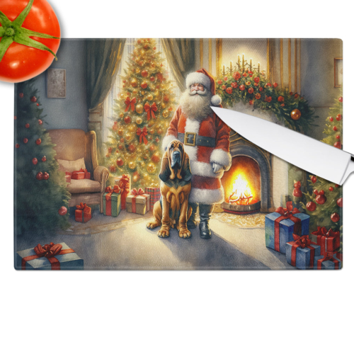 Glass Cutting Board featuring breed specific Bloodhound artwork. Celebrate Christmas with this Christmas Cutting Board. Introduce your kitchen to the vibrant, large Decorative Glass Cutting Board from Caroline’s Treasures. Crafted from resilient tempered glass, this board is not only a utilitarian necessity but also a colorful art piece. With its generous dimensions of 15 inches in height and 12 inches in length, it offers ample space for all your cutting needs. Every piece showcases captivating artwork from distinguished artists, bringing an aesthetic edge to your kitchen. Beyond its attractive design, this cutting board ensures your countertop stays pristine and unscathed, owing to its heat-resistant properties. Engineered with user convenience in mind, it features non-skid feet for stability, and rounded corners for additional safety. Its robust construction renders it virtually unbreakable, guaranteeing longevity. The board comes with protective feet bumpers, maintaining its position during use. This product is recommended to be hand washed only. Proudly printed and assembled in the United States, this cutting board exemplifies superior craftsmanship. With Caroline’s Treasures’ Decorative Glass Cutting Board, you’re investing in a blend of functionality and artistic flair.