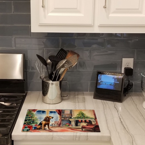 Glass Cutting Board featuring breed specific Bloodhound artwork. Celebrate Christmas with this Christmas Cutting Board. Introduce your kitchen to the vibrant, large Decorative Glass Cutting Board from Caroline’s Treasures. Crafted from resilient tempered glass, this board is not only a utilitarian necessity but also a colorful art piece. With its generous dimensions of 15 inches in height and 12 inches in length, it offers ample space for all your cutting needs. Every piece showcases captivating artwork from distinguished artists, bringing an aesthetic edge to your kitchen. Beyond its attractive design, this cutting board ensures your countertop stays pristine and unscathed, owing to its heat-resistant properties. Engineered with user convenience in mind, it features non-skid feet for stability, and rounded corners for additional safety. Its robust construction renders it virtually unbreakable, guaranteeing longevity. The board comes with protective feet bumpers, maintaining its position during use. This product is recommended to be hand washed only. Proudly printed and assembled in the United States, this cutting board exemplifies superior craftsmanship. With Caroline’s Treasures’ Decorative Glass Cutting Board, you’re investing in a blend of functionality and artistic flair.