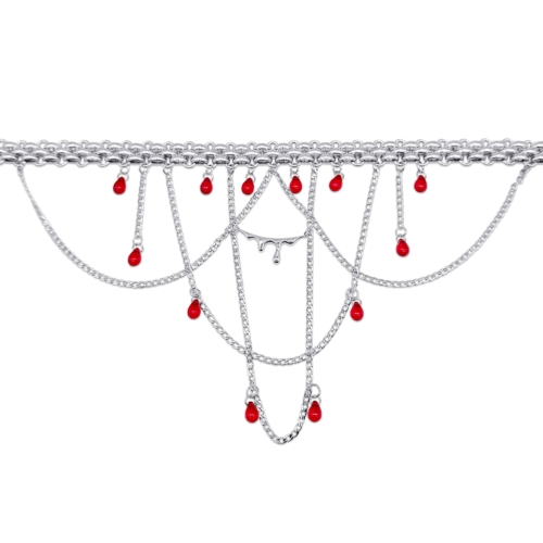 The Bloodlust Choker is a haunting masterpiece that captures the essence of unbridled fear and dark elegance. This choker is a sinister statement piece that draws you into a world where beauty and horror intertwine. The choker clings to the throat like a whisper from the shadows. Dangling from its ominous embrace are crimson blooddrop gems, each glistening with a menacing allure as if they were torn from the fabric of a nightmare. These gems catch the light with an eerie glow, reminiscent of blood-soaked corridors. Where every turn of the chain feels like another twist in a tale of madness and despair. Wear it, and let the blood-red gems serve as a reminder that beauty can be as dangerous as it is captivating.