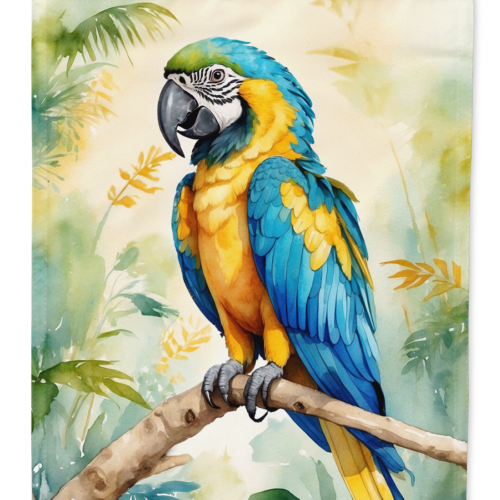 House Flag featuring breed specific Blue and Gold Macaw artwork. Presenting our Heavy Duty Polyester House Size Decorative Sleeve Pole Flag, a vibrant addition to enhance the aesthetic appeal of your home. This large decorative flag, measuring approximately 28 x 40 inches, offers ample coverage and visibility. Each flag is meticulously sewn and made individually, ensuring a unique piece that may slightly vary in size. It’s a sleeve pole flag, designed to fit a standard decorative flag pole effortlessly. Please note that the flag pole and bracket are not included and should be purchased separately. What sets our flag apart is its dual-sided print. The design is mirrored on both sides of the fabric, allowing for uniform visibility regardless of the angle. Printed in full color, our flag showcases vibrant hues that truly stand out. To ensure lasting vibrancy and durability, the dyes are heat-set into the fabric. This ensures your flag remains bright and captivating through various weather conditions. Elevate the look of your home with our Heavy Duty Polyester House Size Decorative Sleeve Pole Flag!