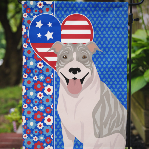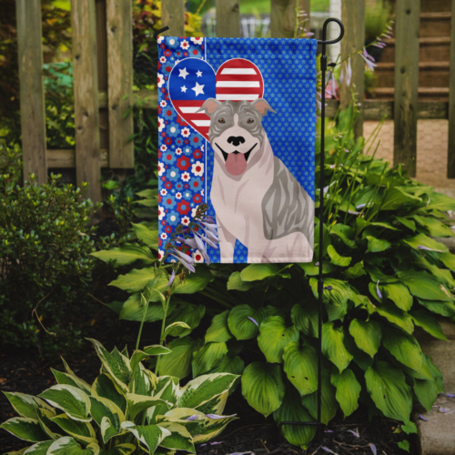 Garden Flag featuring breed specific Pit Bull Terrier artwork. This Garden Flag is from Caroline’s Treasures collection USA Love America. Enhance the beauty of your garden, patio, or yard with Caroline’s Treasures Decorative Garden Flag, proudly made in the USA. Crafted from two pieces of thick, double-sided polyester fabric, this 2-ply garden flag is designed to withstand various weather conditions, making it water-resistant and weatherproof. Featuring correctly readable words on both sides, this garden flag offers a delightful visual experience from any angle. With its heavier weight, it stands out among other garden flags, ensuring stability and durability even in wind, rain, and snow. Measuring approximately 11 1/4 inches by 15 1/2 inches, this flag allows you to personalize your outdoor decor. It comes with a 1 1/2-inch sleeve sewn in, allowing easy attachment to any standard garden flag stand or garden size porch hanger (sold separately). Make a statement in your outdoor space with Caroline’s Treasures Decorative Garden Flag, a vibrant and high-quality flag that adds color and personality to your surroundings. Proudly made in the USA, it’s a symbol of quality craftsmanship and attention to detail. This Garden Flag is from Caroline’s Treasures Dogs category of products.