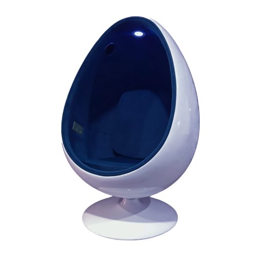 Blue Retro Egg Chair A talking point to any room. Sit back and snuggle up. Ideal for relaxing or hiding away.The shape and surround gives you the sense of security and privacy and absorbs sound making it the ideal retreat Features Padded cushion back and seat, with covered internal walls. 360 degree Rotation Large enough for adults Includes LED light Speaker to play sound through Bluetooth connection and USB media. Aux connection for headphones. Size:136cm tall x 72cm diameter base,96 cm at widest point of egg Colour: Blue