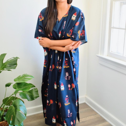 This caftan dress cover up is made of a best quality material with no structure so that it drapes effortlessly and elegantly. It is very forgiving and loose fitting for maximum comfort and best wear. Colors are very vibrant and unique. Each dress is handmade and timeless.