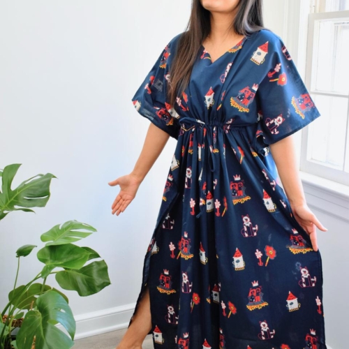 This caftan dress cover up is made of a best quality material with no structure so that it drapes effortlessly and elegantly. It is very forgiving and loose fitting for maximum comfort and best wear. Colors are very vibrant and unique. Each dress is handmade and timeless.