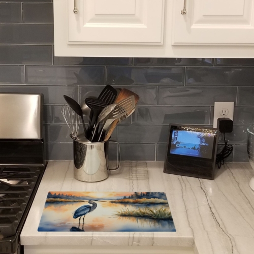 Glass Cutting Board featuring breed specific Blue Heron artwork. Introduce your kitchen to the vibrant, large Decorative Glass Cutting Board from Caroline’s Treasures. Crafted from resilient tempered glass, this board is not only a utilitarian necessity but also a colorful art piece. With its generous dimensions of 15 inches in height and 12 inches in length, it offers ample space for all your cutting needs. Every piece showcases captivating artwork from distinguished artists, bringing an aesthetic edge to your kitchen. Beyond its attractive design, this cutting board ensures your countertop stays pristine and unscathed, owing to its heat-resistant properties. Engineered with user convenience in mind, it features non-skid feet for stability, and rounded corners for additional safety. Its robust construction renders it virtually unbreakable, guaranteeing longevity. The board comes with protective feet bumpers, maintaining its position during use. This product is recommended to be hand washed only. Proudly printed and assembled in the United States, this cutting board exemplifies superior craftsmanship. With Caroline’s Treasures’ Decorative Glass Cutting Board, you’re investing in a blend of functionality and artistic flair.
