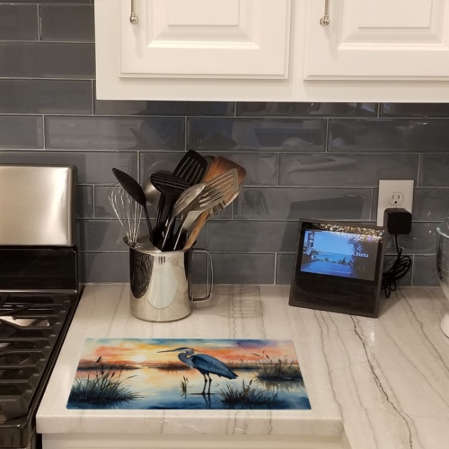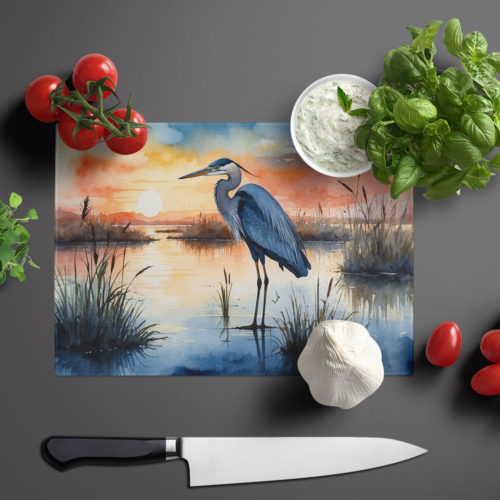 Glass Cutting Board featuring breed specific Blue Heron artwork. Introduce your kitchen to the vibrant, large Decorative Glass Cutting Board from Caroline’s Treasures. Crafted from resilient tempered glass, this board is not only a utilitarian necessity but also a colorful art piece. With its generous dimensions of 15 inches in height and 12 inches in length, it offers ample space for all your cutting needs. Every piece showcases captivating artwork from distinguished artists, bringing an aesthetic edge to your kitchen. Beyond its attractive design, this cutting board ensures your countertop stays pristine and unscathed, owing to its heat-resistant properties. Engineered with user convenience in mind, it features non-skid feet for stability, and rounded corners for additional safety. Its robust construction renders it virtually unbreakable, guaranteeing longevity. The board comes with protective feet bumpers, maintaining its position during use. This product is recommended to be hand washed only. Proudly printed and assembled in the United States, this cutting board exemplifies superior craftsmanship. With Caroline’s Treasures’ Decorative Glass Cutting Board, you’re investing in a blend of functionality and artistic flair.