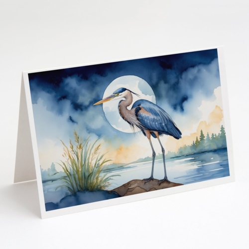 Blue Heron Under the Moonlight Greeting Cards Pack of 8