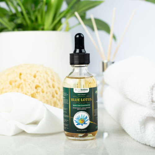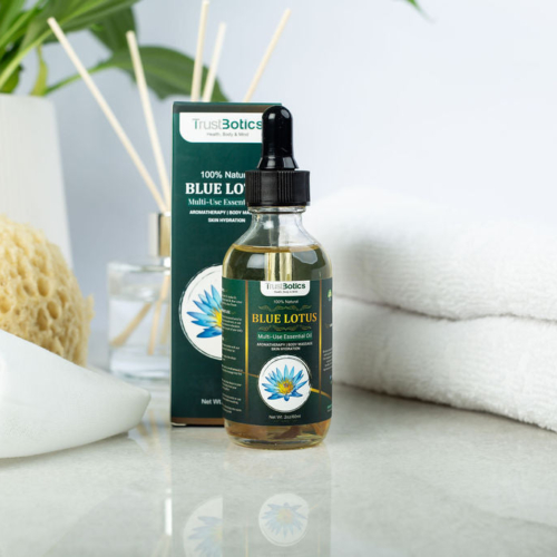 A rare treasure of timeless beauty, TrustBotics Blue Lotus Multi-Use Essential Oil (60ml), is cherished for its elegance and cultural heritage. With its delicate floral touch and silky texture, this ready to use oil transforms everyday care into refined moments of harmony. Loved for its grace and sophistication, it’s crafted to bring indulgence into your modern rituals. Blue Lotus Multi-Use Essential Oil Properties Evening & Relaxation Rituals – The delicate floral aroma helps create a peace atmosphere, making it a perfect addition to your evening beauty or self-care routine Skin Hydration & Care – Rich in natural elements, lightweight blend nourishes, leaving your skin soft, smooth, radiant and glow. Elegant floral aroma for refined daily rituals and enhances beauty care Balance & Harmony – Cherished for its soothing properties in daily beauty care Gentle Presence – A perfect companion for moments to pause, elevates your daily rituals with a subtle floral touch Hair Care – Infused with essential nutrients, this oil nourishes hair, enhancing shine and softness Versatile & Ready to Use – Apply directly to skin, body and hair Aromatherapy – Perfect for massage, and unwind after a long day. Ideal for fragrance layering with a touch of luxury Body Care – Silky texture that nourishes & softness the skin Multi-Use – Skin, hair, bath, yoga, massage & aromatherapy Base Oils – Jojoba oil, camellia japonica seed oil, cold-pressed castor oil Format – 60ml premium glass bottle TrustBotics Blue Lotus Multi-Use Essential Oil – a luxurious ready to use blend inspired by one of nature’s rarest treasures. Its silky, lightweight texture glides smoothly onto the skin, leaving it soft, radiant, and beautifully scented. Perfect for beauty care, massage, or evening self-care rituals, Blue Lotus also enhances fragrance layering with a refined floral touch. Cherished for centuries as a symbol of grace and balance, Blue Lotus offers a truly unique sensory experience. With pre-blended formula, every drop is ready to use straight from the bottle – an effortless way to add harmony to your modern lifestyle. Add TrustBotics Blue Lotus Multi-Use Essential Oil to your self-care ritual and feel the difference from the first drop! Add to cart today and embrace the beauty of elegance! Natural | Vegan | Botanical Ingredients | Certified by CERES, ISO & FDA – ensuring premium botanical quality, and ethical sourcing. CONTENT: 60ml Ingredients: Crafted with a refined blend of Simmondsia Chinensis (Jojoba) Seed Oil, Camellia Japonica Seed Oil, and Ricinus Communis (Castor) Seed Oil, infused with the exquisite essence of Blue Lotus: Nymphaea Caerulea Flower Oil Note from Nature: You may notice tiny plant particles inside your bottle – petals, herbs or botanical traces. This is completely normal. Each bottle is infused with real, natural elements that enhance the scent and benefits. We do not overly filter our oils, because we believe in keeping them as close to nature as possible. TrustBotics multi-use essential oils are not just beautifully scented – they are living blends crafted with integrity and care. The visual texture is a sign of authenticity, not imperfection.