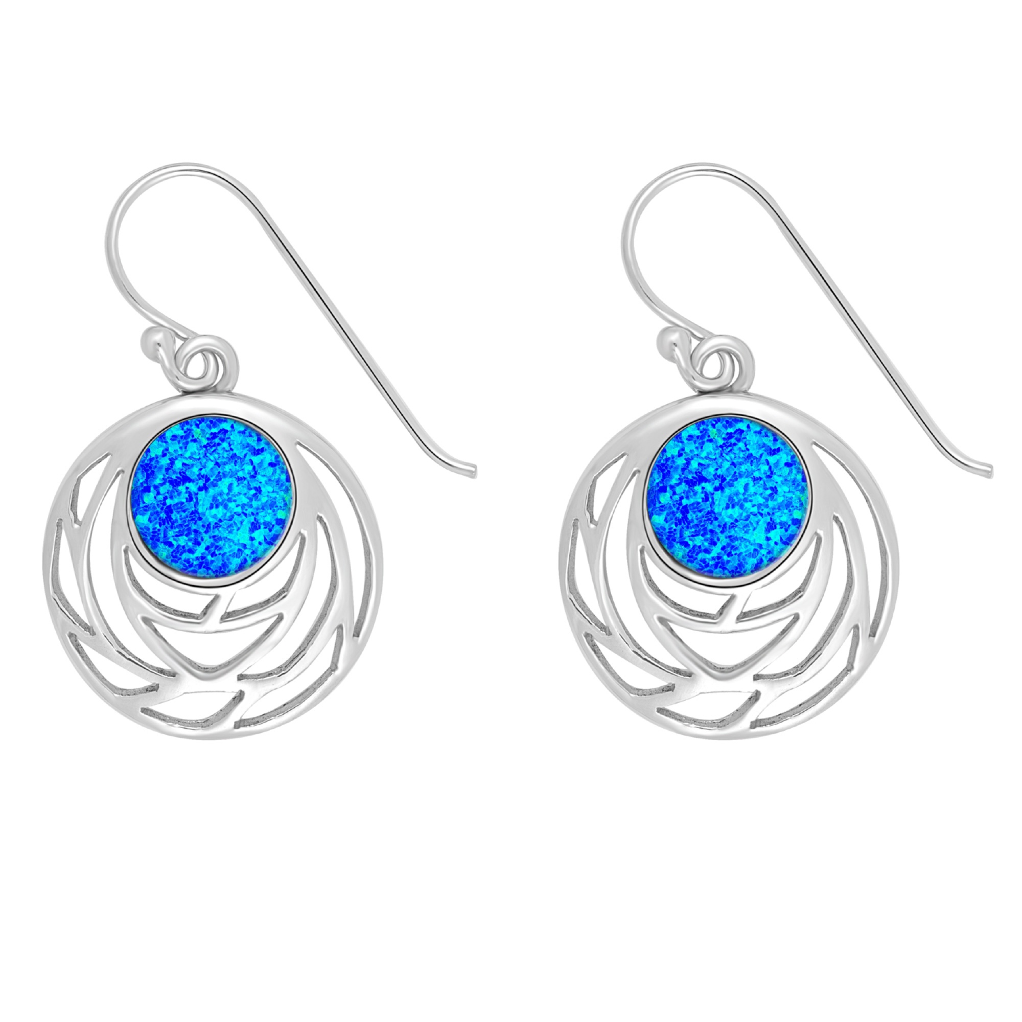 Stunning Sterling Silver Blue Opal Round Stylized Earrings