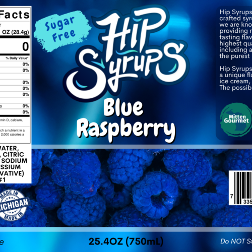 Natural flavoring, that comes in sugar or sugar-free! Ideal for your water, tea, smoothies, shakes, and much more! All products are handcrafted & made right in Michigan! This handcrafted Blue raspberry Hip Syrup tastes slightly tartier than raspberries and a tad bit sour.