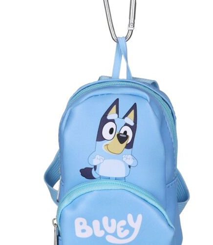 If you’re on the lookout for a new cool bag clip, then this Bluey Mini Backpack Bag Clip has got you covered! This clip features a miniature blue backpack with useable zips and compartments. It features an image of Bluey on the front and ‘Bluey’ written on the front pocket! It is complete with elasticated straps and a clip for attaching onto bags or backpacks.
