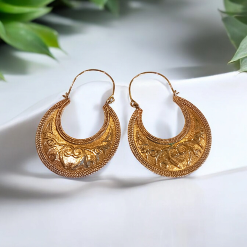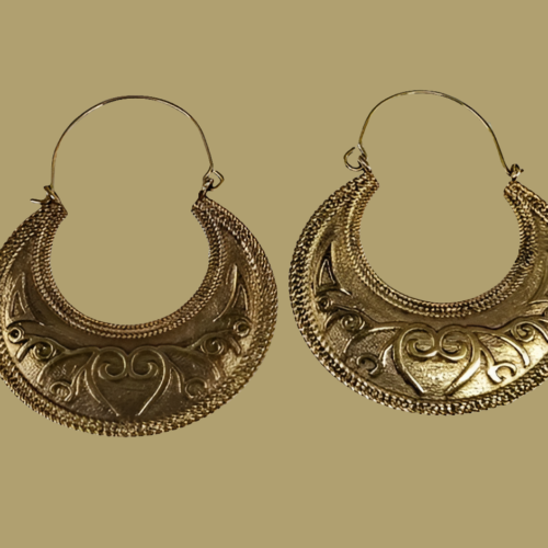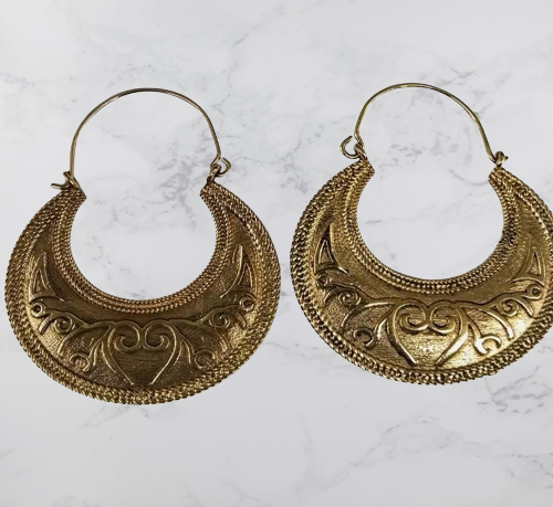 These gorgeous earrings are made from Brass and Oxidised Silver – the design is of a celestial half moon sun pendants with beautiful details throughout. Closure with ear wire. Drop length: 6cm (2.3 inches) Length: 34 Millimetres Width: 40 Millimetres Materials: Brass or GS Metal Oxidised silver Location: Earlobe Closure: Ear wire