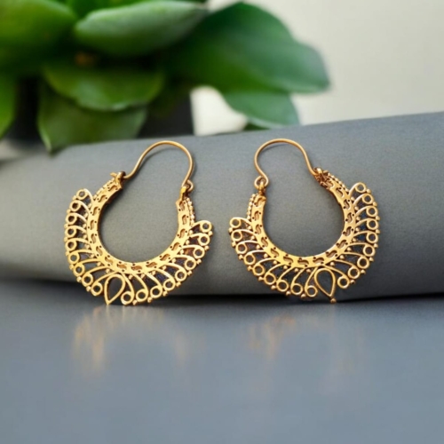 Bohotusk Gold Boho Earrings – brass. Closure with ear wire. Chain length: 54cm Length: 50 Millimetres Width: 40 Millimetres Materials: Brass Location: Earlobe Closure: Ear wire