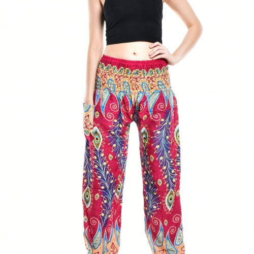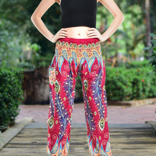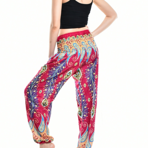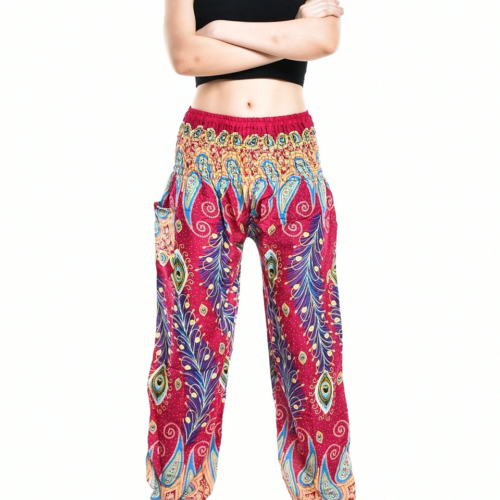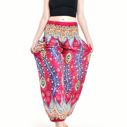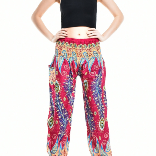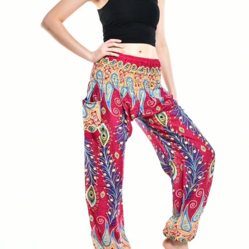 These beautifully crafted trousers are hand made in Thailand. They are constructed from 100% Super Soft Rayon material, that is both lightweight but strong & resilient. This style comes in only S/M size currently with a fully elasticated waist designed to fit a broad range of waists from size 8 to 12 UK Our harem pants will make you feel like you’re walking on air because they are constructed from lightweight, supersoft and breathable 100% Thai Rayon. Features include:- • 1 x External pocket on right hip • Elasticated smocked waist • Elasticated ankles • Available in 3 gorgeous colours • The elasticated waistline also makes our harem pants ideal as maternity trousers Sizing info – Small / Medium • Inside seam (inside leg) is 28 inches (72cm) • Length of trouser is 42 inches (107cm) • To fit hip to a maximum of 38 inches (107cm) • To fit waist (as above) of 20 to 38 inches (51-104cm) Our elasticated waistline is flattering for many shapes, sizes and body types. Flattens tummy and great for various figures, including for maternity. We also have very similar styles with tie waists.