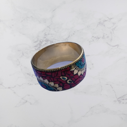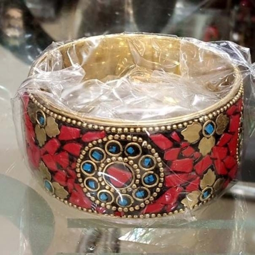 Bohotusk Red Mosaic Brass Bangle Bracelet